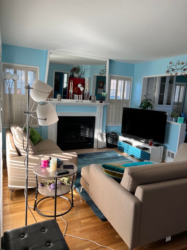 I don’t hate it. But it’s lending greatly to the feeling like I’m staying in someone else’s house. Last night I did a little restorative yoga like I’ve done a million times in front of the fireplace with candles (I’m extra that way). I made it work in the new configuration. It was like doing it at someone else’s house. And yet, I didn’t hate how much closer to the fire I could be. Earlier, today, I had to review some contracts with focus time and decided to unplug from the desk and do it on my lap snuggly on my big chair with the fireplace going. It’s been snowing off and on and cloudy all day, so it was frankly kind of cozy and awesome.