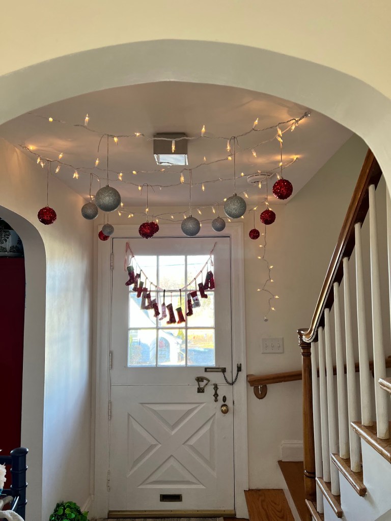 I’ve spent the first weeks of December slowly putting my existing holiday decor around the house, and I’ve started to add some new things to the mix – like this hallway lights thing in my entryway. Yeah, I finally succumbed to insta-inspiration. But I like it and think it’s cute.